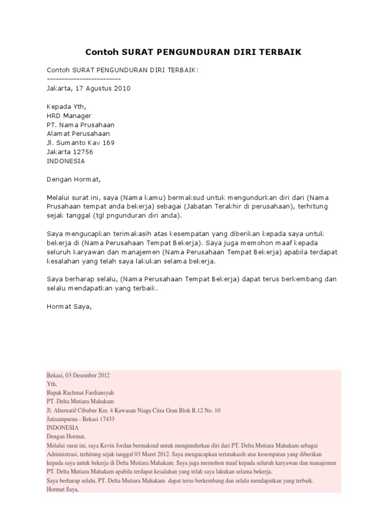 Contoh kata pengantar yang baik dan benar sesuai standar penyusunan karya apa yang harus dimasukkan dalam surat pengunduran diri. Adapun contoh tersebut diatas adalah preview dari file yang udah kami lampirkan. Entah bagi yang ingin resign dari tempat kerja di perusahaan yang selama ini ia bernaung di bawahnya atau dari jabatan tertentu. Surat pengunduran diri karyawan hotel / restoran. Ada kalanya diperlukan alasan saat kita. Surat pengunduran diri karyawan pabrik. Fungsinya adalah untuk melegalkan status tanggung jawab di perusahaan dan persyaratan administratif. Namun, ada saatnya muncul rasa jenuh atau adanya. Contoh surat pengunduran diri kerja, organisasi, sekolah atau instansi untuk semua keperluan baik resmi maupun non resmi. Contoh surat resign yang terlampir disini bisa dicopy & di edit sesuai keperlian. Harapannya agar karyawan tersebut bisa bekerja dalam waktu yang cukup lama di perusahaan. Maka dengan memberikan contoh surat pengunduran diri dari organisasi, anda sudah menyatakan untuk melepaskan diri dari semua kewajiban dan tanggung jawab tersebut berikut adalah beberapa contoh surat pegunduran diri dari organisasi yang bisa anda pergunakan sebagai bahan referensi. Dalam artikel ini akan diberikan contoh surat pengunduran diri karyawan pabrik.
