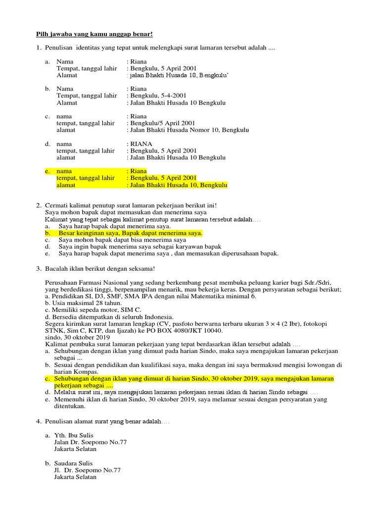Baik itu kepala surat, pembuka surat, isi bagian surat dan penutup surat yang bisa menjelaskan maksud dari keseluruhan surat lamaran tersebut. Contoh surat lamaran pekerjaan yang tepat dan benar, kenapa harus benar dan tepat? Dengan contoh surat lamaran kerja yang tepat akan memudah kamu dalam membuatnnya. Berikut kalimat yang menyatakan diikutsertakannya lamaran dalam surat lamaran pekerjaan yang tepat adalah…. Surat lamaran pekerjaan adalah sebuah surat yang ditulis oleh pemohon pekerjaan kepada pemilik perusahaan agar diberikan pekerjaan, surat ini bersifat resmi oleh sebab itu surat ini biasanya berisi tanggal, orang yang dituju, alamat dalam, pembukaan, isi surat, dan penutup. Aturan tersebut ditujukan agar informasi yang hendak disampaikan dapat tersalurkan kepada penerima sesuai yang dimaksudkan. Kalimat yang tepat untuk memperbaiki kalimat penutup surat tersebut adalah …. Berbeda dengan surat lamaran yang diketik, surat lamaran kerja tertulis harus dibuat dengan tulisan yang rapi. Kalimat pembuka surat lamaran kerja sesuai dengan pengumuman tersebut yang tepat adalah …. Salah satunya memerhatikan kalimat akhir dalam surat tersebut. Surat lamaran kerja menjadi salah satu lampiran penting yang dibuat oleh para pencari kerja dengan tujuan utama untuk mengajukan pekerjaan baru. 11 surat adalah sehelai kertas atau lebih yang memuat bahan komunikasi yang dibuat seseorang baik atas nama pribadi maupun organisasi yang disampaikan kepada seseorang baik atas nama pribadi. Di akhir tulisan ucapkan kalimat penutup yaitu permohonan diterima oleh perusahaan tersebut dan salam.
